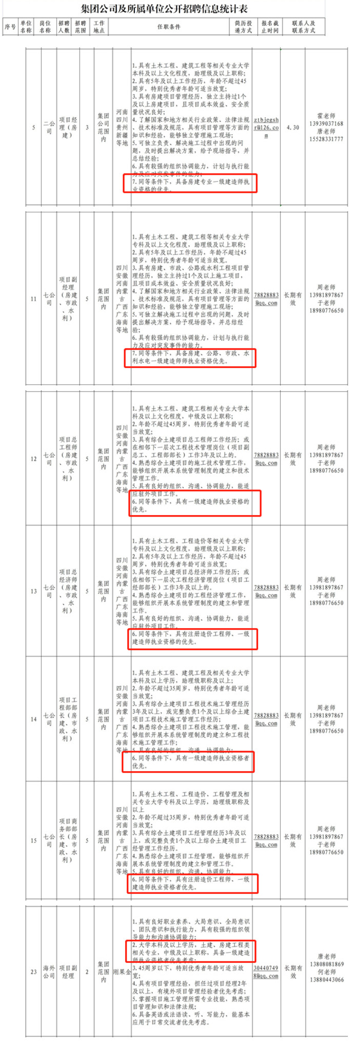 其中:中鐵八局本部部門14人,二公司所屬項目部14人,三公司機關部門4人、所屬經營聯絡點4人,七公司所屬項目部25人,物流公司機關部門2人、所屬實體單位11人,海外公司所屬項目部24人。