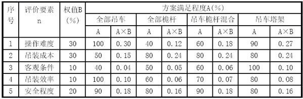 1.根據(jù)技術(shù)經(jīng)濟(jì)分析表,運(yùn)用綜合評(píng)價(jià)法選定最優(yōu)的吊裝方案。