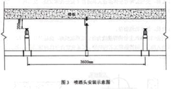 2.因: ( 1 )噴頭運到現場外觀檢查后立即與管道同時安裝,錯誤,應在安裝前進行密封性能試驗,并且在系統試壓、洗沖 合格后進行。 (2 )噴頭濺水盤距頂棚為 200mm ,錯誤;應為 75~150mm ; (3 )兩噴頭間距為 3.6m,錯誤;停車庫為中危險二級,噴頭間距不應超過 3.4m。