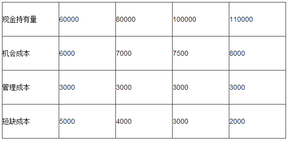 【解析】:持有的總成本即為機會成本、管理成本和短缺成本之和,最小的方案最優。