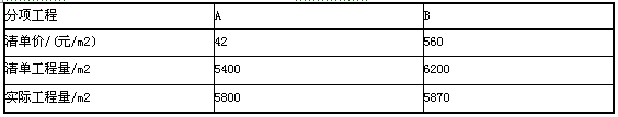 萬元,材料費504.4萬元,機械使用費l55.3萬元,施工措施費l04.2萬元,施工管理費46.2萬元,稅金30.6萬元),然后將成本預測結果下達給項目經理部進行具體施工成本管理。總承包施工合同是以工程量清單為基礎的固定單位合同。合同約定當A分項工程、B分項工程實際工程量與清單工程量差異幅度在±5%以內的按清單價結算,超出幅度大于5%時