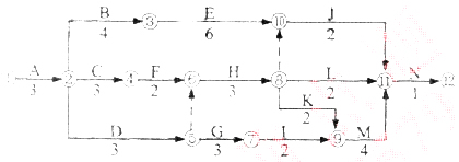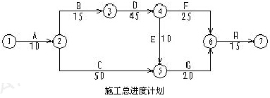 2.指出施工總進(jìn)度計(jì)劃圖的關(guān)鍵線路(用工作法表示)和總工期。