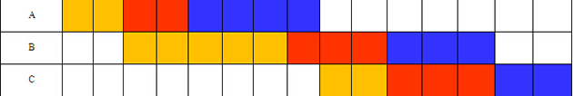事件一:項(xiàng)目部為組織流水施工,在平面上劃分為三個施工段,三個施工過程:基礎(chǔ)、主體結(jié)構(gòu)、二次砌筑,三個施工過程采用三個作業(yè)隊(duì)組織無節(jié)奏流水施工,其流水施工橫道圖如圖所示(時間單位:月)。