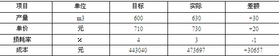 事件二:施工過程中,項目部對混凝土的成本進行了分析,發現了成本超標。