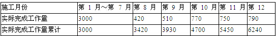 經業主工程師代表簽認的 B 承包商實際完成的工作量(第 1 月~第 12 月)見下表。