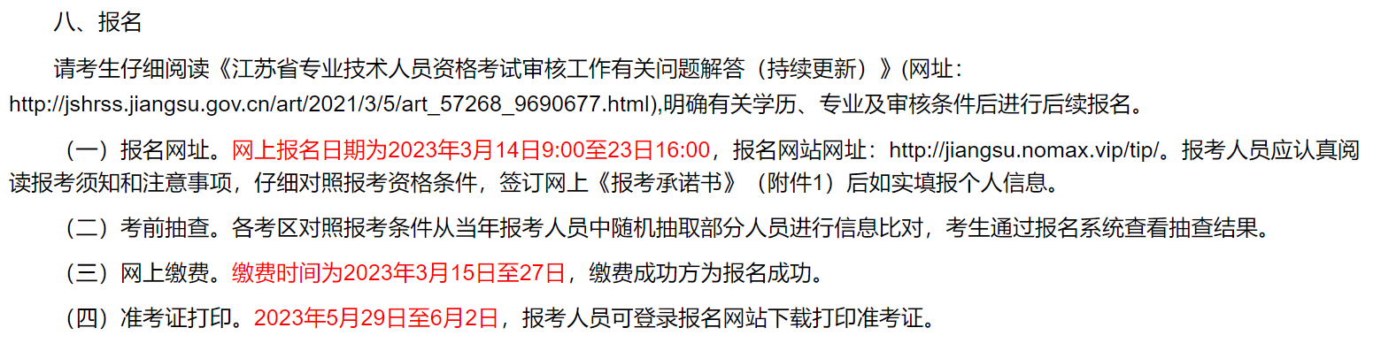 今日,江蘇省人社廳發(fā)布《關于2023年度二級建造師執(zhí)業(yè)資格考試工作有關事項的通知》,確定了二建報名、繳費等重要時間節(jié)點: