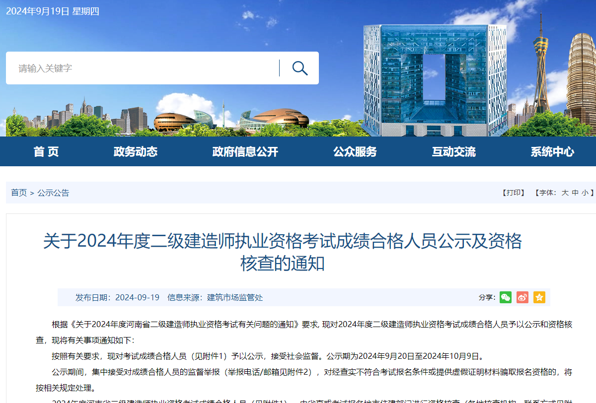 根據《關于2024年度河南省二級建造師執(zhí)業(yè)資格考試有關問題的通知》要求, 現(xiàn)對2024年度二級建造師執(zhí)業(yè)資格考試成績合格人員予以公示和資格核查,現(xiàn)將有關事項通知如下: