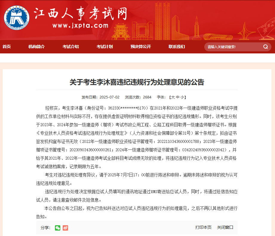 最近江西人事考試網(wǎng)通報(bào)了一個(gè)一建考生的違紀(jì)案例,看完真是讓人唏噓——四年考下來的三個(gè)一建證書,因?yàn)椴牧显旒伲孔鲝U!