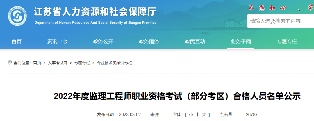 根據江蘇人社廳發布的合格人員名單公示,2022年江蘇省監理工程師資格考試合格人數為 4480 人。