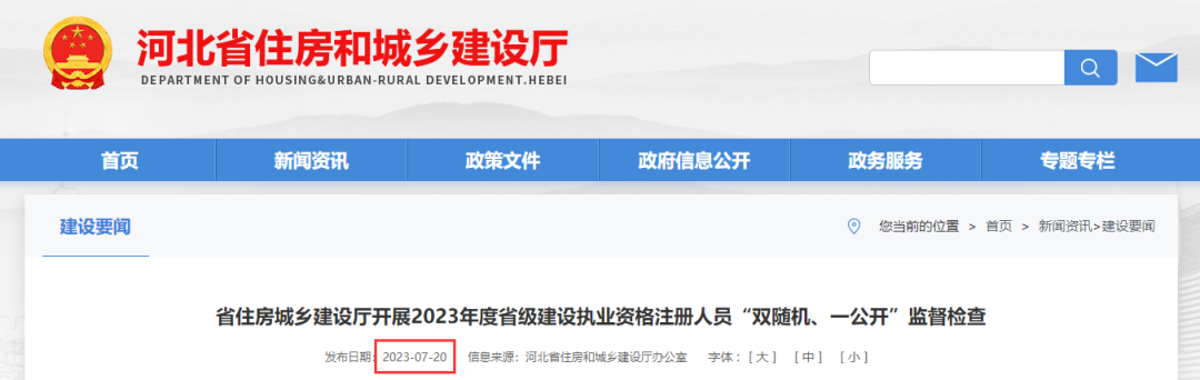 近日,河北住建廳發布了《省住房城鄉建設廳開展2023年度省級建設執業資格注冊人員“雙隨機、一公開”監督檢查》,其中提到:省住房城鄉建設廳定于7月—11月在全省范圍內開展2023年度省級建設執業資格注冊人員“雙隨機、一公開”監督檢查工作。