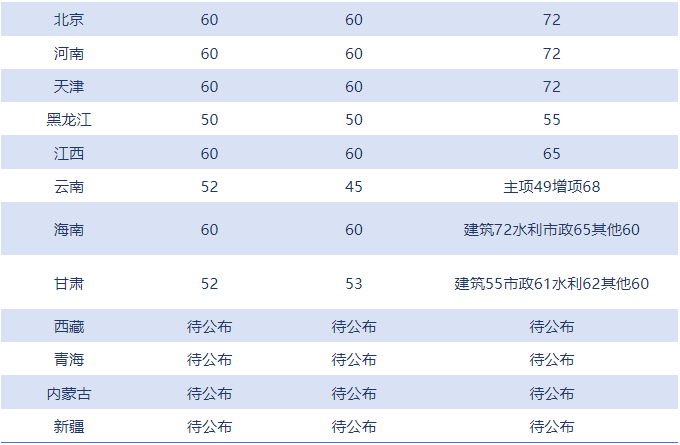 同時,以上大部分地區的二建合格線也已公布,另外西藏、青海、內蒙古、新疆的二建合格標準需待有關部門確定后另行公布。