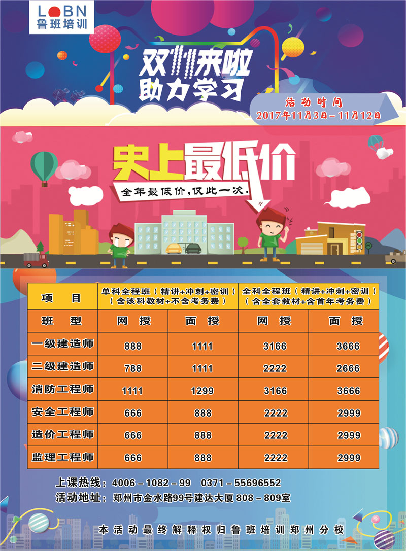 您的當前位置:魯班培訓(xùn)-一建培訓(xùn),二建培訓(xùn),監(jiān)理,注冊安全工程師等 > 開課通知 > 優(yōu)惠活動 >