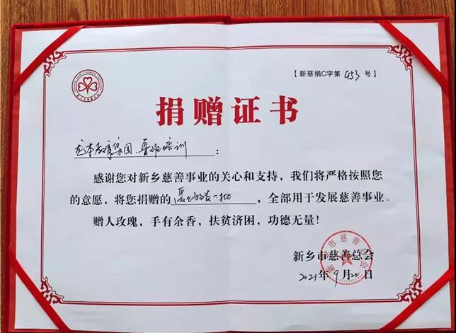 在7.20洪災捐款活動中,龍本魯班被授予并頒發榮