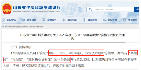 審核報(bào)考人員網(wǎng)上填報(bào)的學(xué)歷、專業(yè)、畢業(yè)年限、專業(yè)技術(shù)職稱等信息,并結(jié)合“學(xué)信網(wǎng)”“社保庫”“臨時執(zhí)業(yè)證書庫”等平臺數(shù)據(jù)進(jìn)行信息比對。