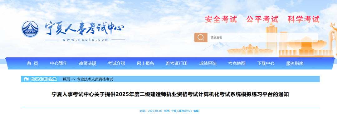 考生可通過如下網址或寧夏人事考試中心網飄窗進入模擬練習平臺:http://nxys.cetset.com/